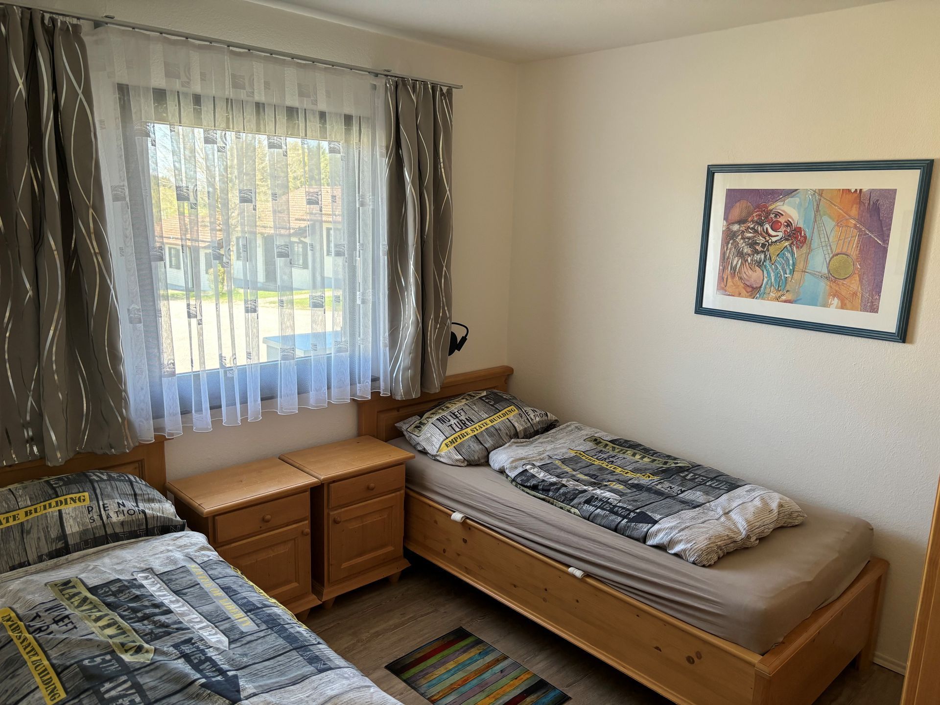 Das Kinderzimmer ist mit zwei Einzelbetten auch für Erwachsene geeignet (90x200 cm), 1 Sitzkasten, einer Sidebord und einer Hakenleiste ausgestattet.